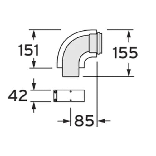 Bocht 90° met aluminium binnenbuis om de schouw van een Vaillant TurboMag of Bulex Opalia F aan te sluiten.