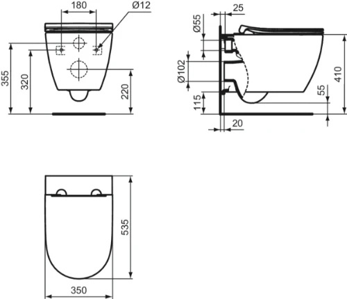 Ideal Standard I life O hangtoilet PACK Hydrotwist (hangtoilet met sandwich toiletzitting met softclose) zonder spoelrand - wit